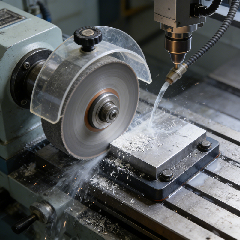 Grinding is a precision finishing process that removes small amounts of material using a high-speed rotating abrasive wheel, achieving extremely high dimensional accuracy and superior surface quality.